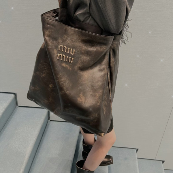 미우미우 마테라쎄 나파 가죽 토트백 블랙