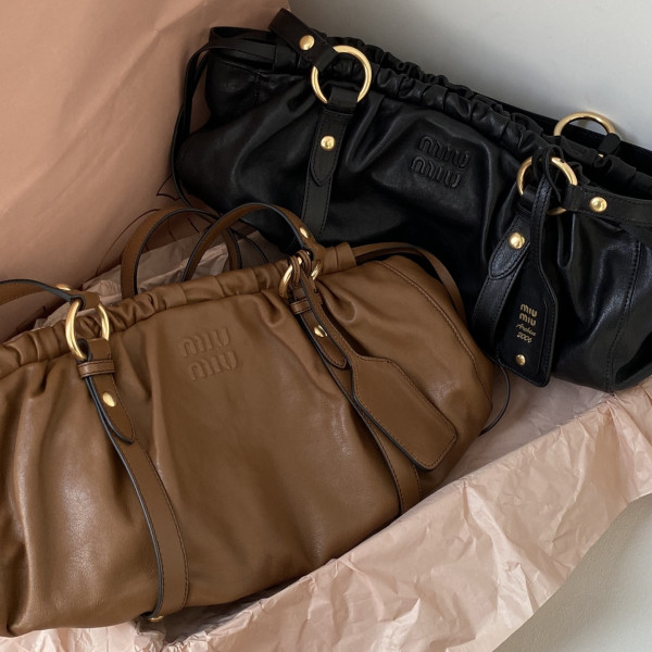미우미우 마테라쎄 나파 가죽 토트백 블랙 > MIU MIU