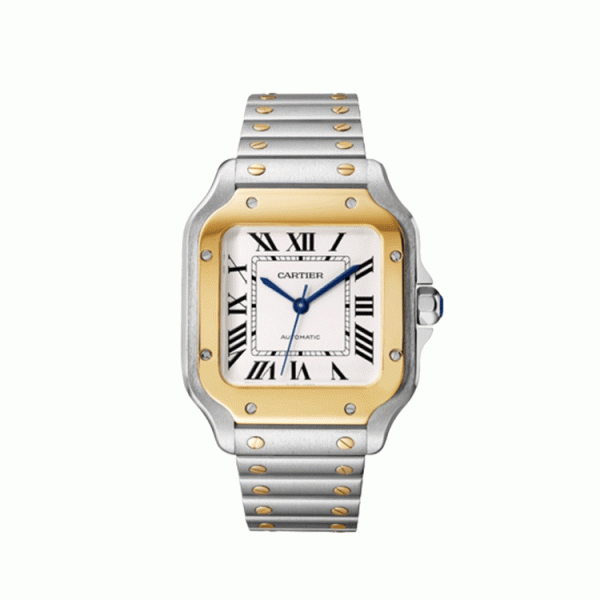 까르띠에 산토스 실버 옐로우 골드 베젤