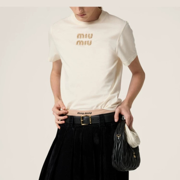 미우미우 자수 로고 티셔츠