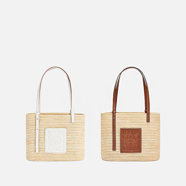 로에베 라피아 & 카프스킨 스몰 내추럴 스퀘어 바스켓 백
