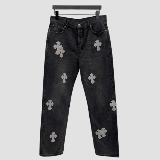 크롬하츠 레더 패치 데님 진 청바지 > 팬츠