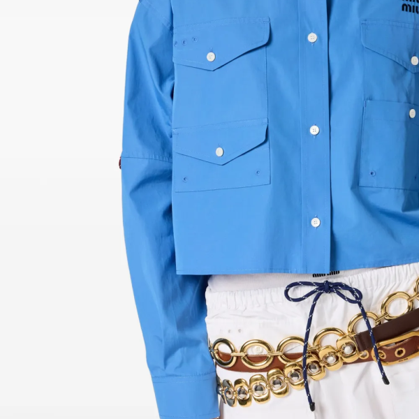 미우미우 로고 자수 프런트 포켓 셔츠