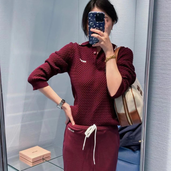 미우미우 버건디 폴로셔츠