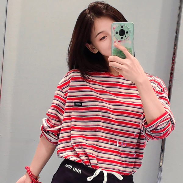 미우미우 스트라이프 긴팔 티셔츠