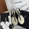 샤넬 샌들 사틴 메탈 스트라스 블랙