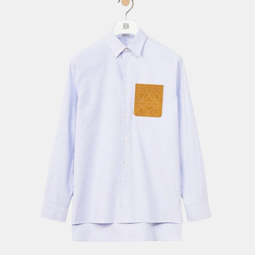 로에베 아나그램 소가죽 로고패치 스트라이프 셔츠
