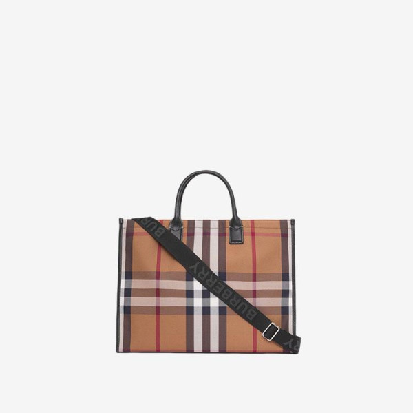 버버리 체크 코튼 캔버스 토트 백