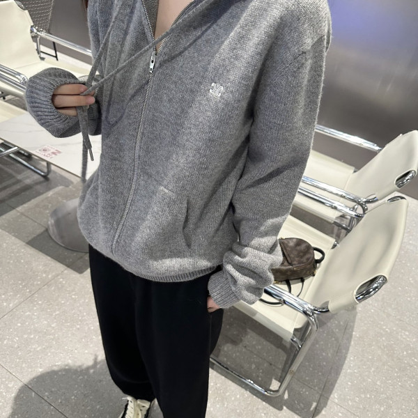 미우미우 더블 캐시미어 지퍼 후디 가디건