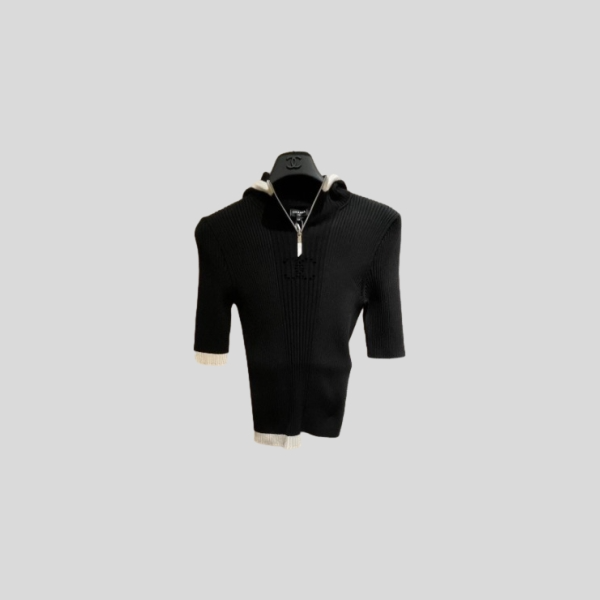 샤넬 크로셰 지퍼 후드 반소매티