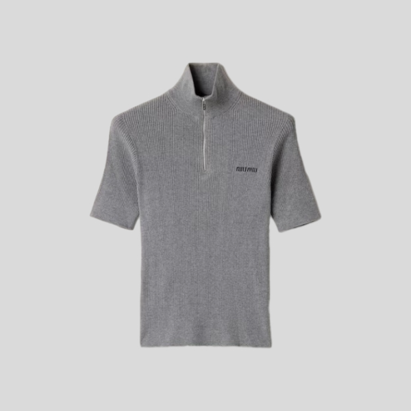 미우미우 리브드 니트 캐시미어 폴로 스웨터