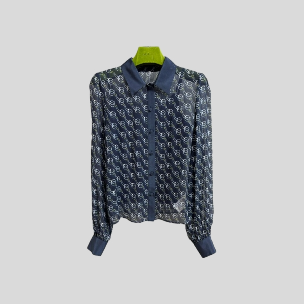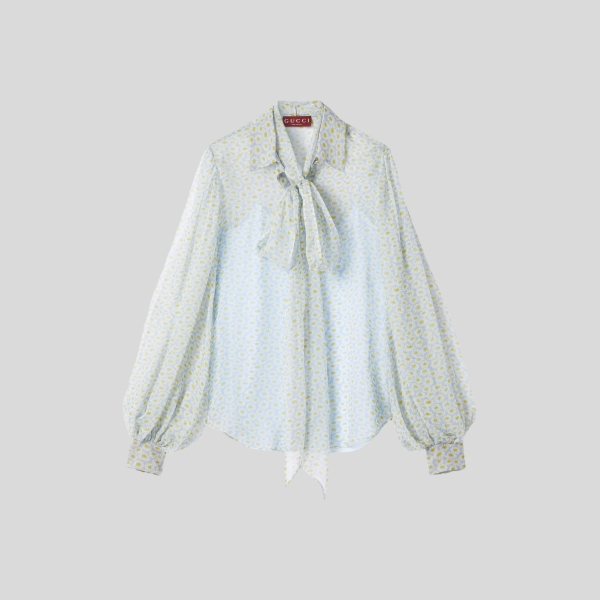 구찌 프린트 실크 쉬폰 셔츠