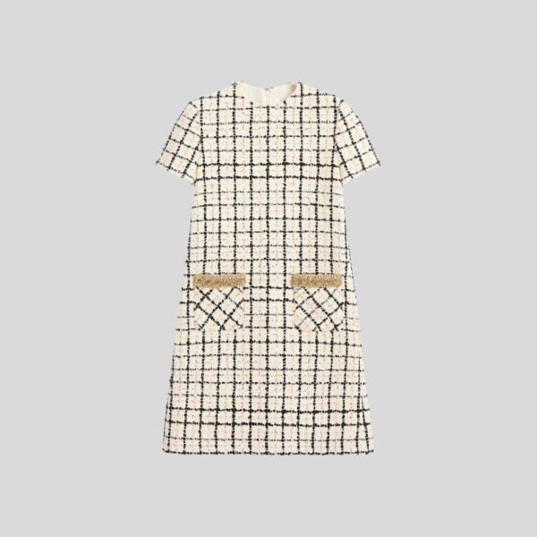 발렌티노 트위드 플레드 반팔 드레스