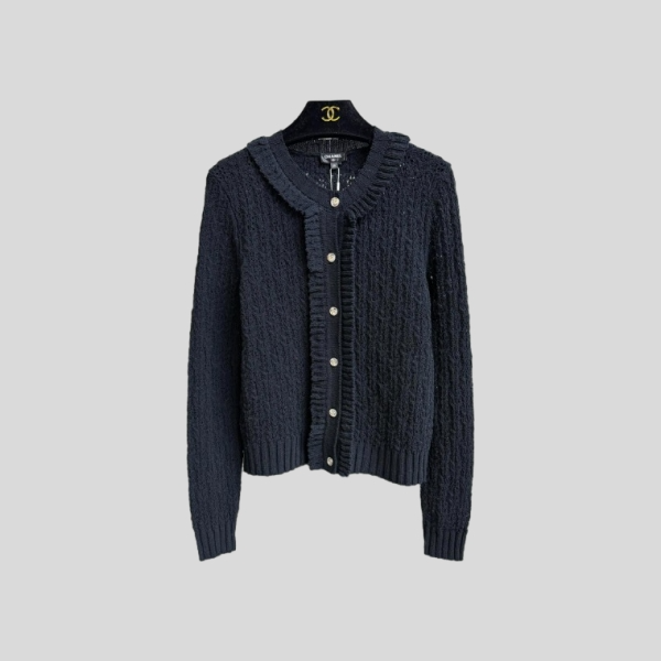 샤넬 러플 캐시미어 가디건 블루