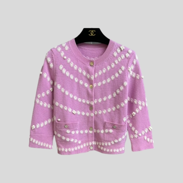 샤넬 니트 가디건 핑크