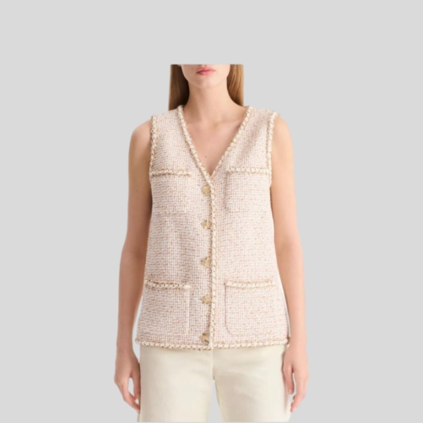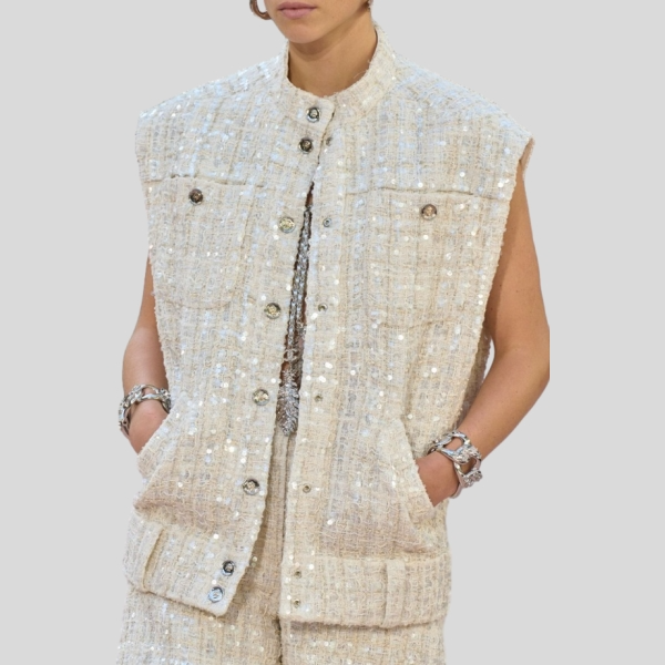 샤넬 골드 스레드 오프화이트 베스트