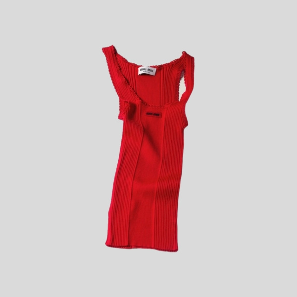 미우미우 립 조직 니트 울 탱크탑