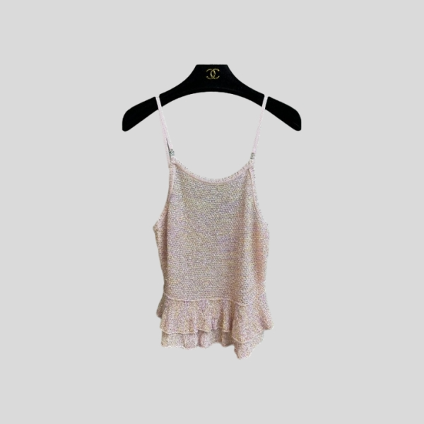 샤넬 스팽글 민소매 탑