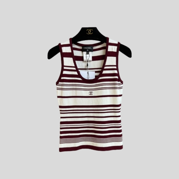 샤넬 스트라이프 니트 민소매 탑