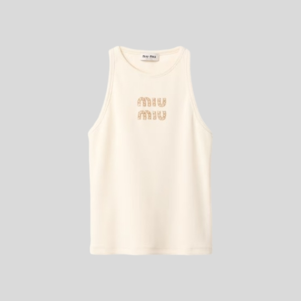 미우미우 자수 로고 립 조직 저지 탑