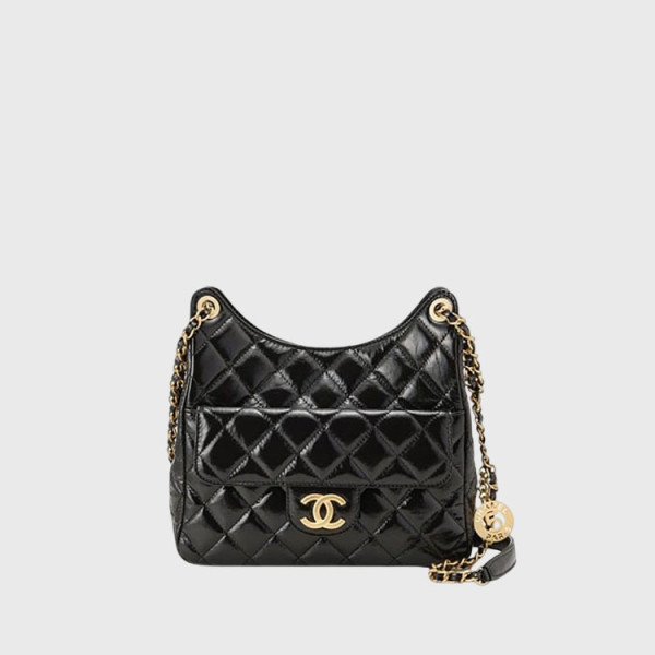샤넬 호보백 샤이니 크럼플드 카프스킨 & 골드 메탈 블랙