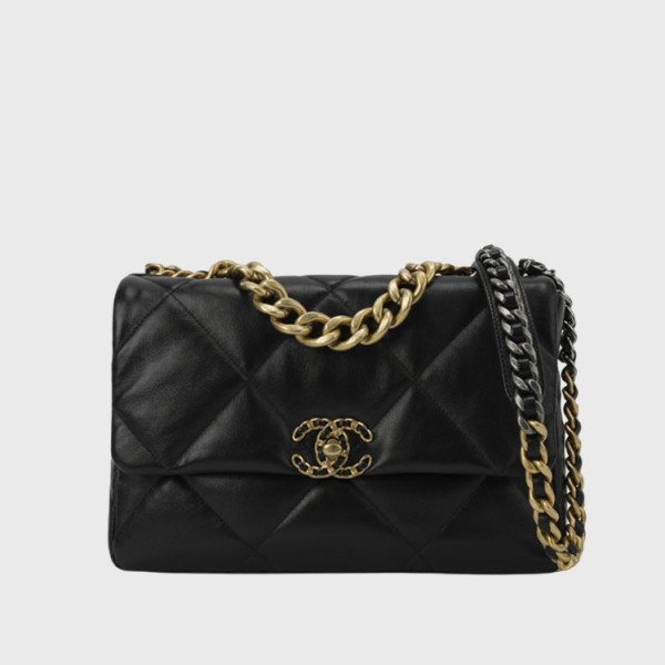 샤넬 19 라지 핸드백 램스킨 & 골드 메탈 블랙