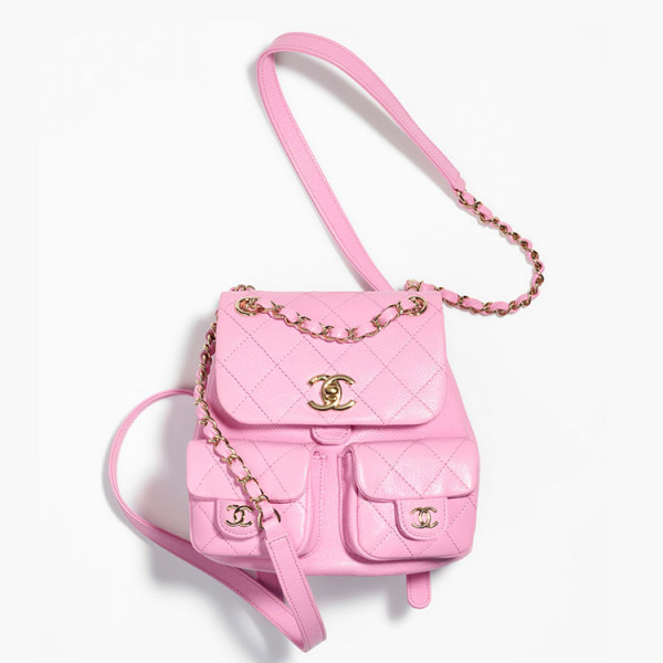 샤넬 스몰 백팩 유광 그레인드 카프스킨 & 골드 메탈 라일락