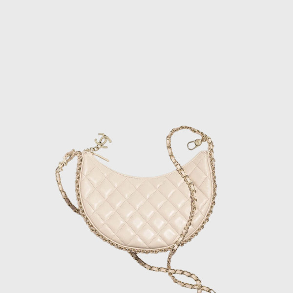 샤넬 스몰 호보 백 램스킨 & 샤이니 라이트 골드 메탈 에크루