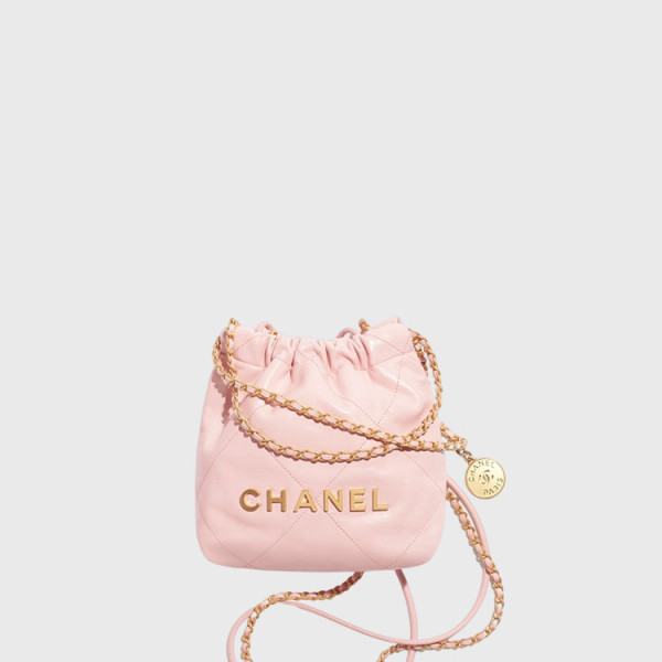샤넬 22 미니 핸드백 샤이니 카프스킨 & 골드 메탈 라이트 핑크