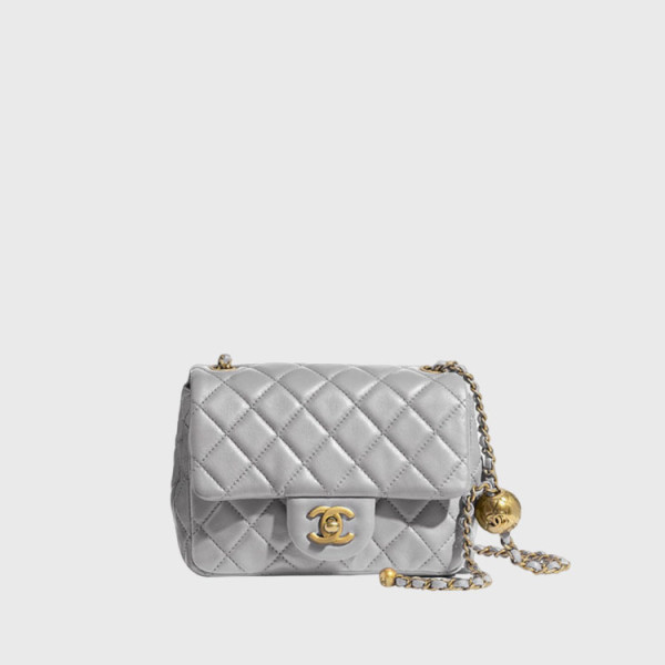 샤넬 미니 플랩백 램스킨 & 골드 메탈 라이트 그레이