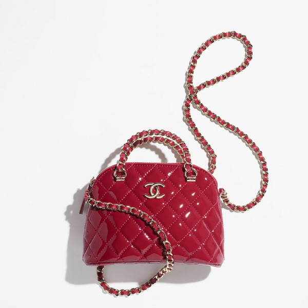 샤넬 스몰 쇼핑백 페이턴트 카프스킨 & 골드 메탈 레드