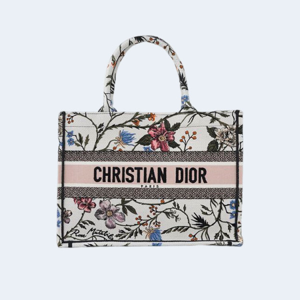 디올 화이트 플라워 북 토트 미디엄 백