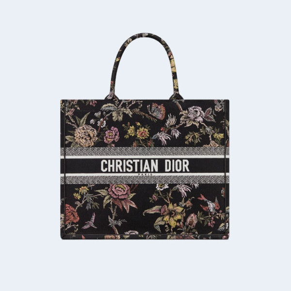디올 레이디 블랙 플라워 북 토트 라지 백