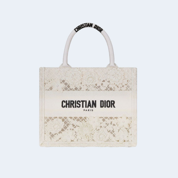 디올 레이스 마크라메 북 토트 미디엄 백 화이트