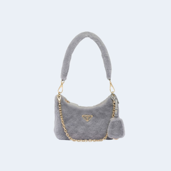 프라다 리에디션 시어링 미니 숄더백 그레이