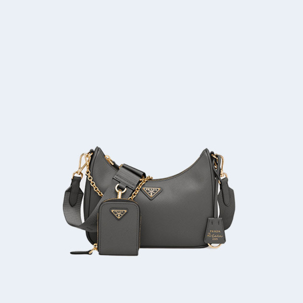 프라다 리에디션 2005 사피아노 레더 숄더백 딥그레이