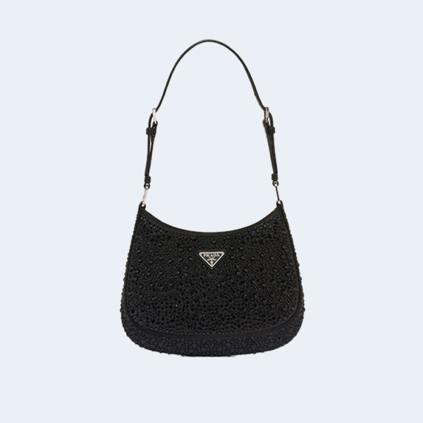 프라다 클레오 크리스탈 새틴 숄더백 블랙