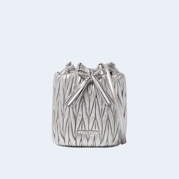 미우미우 마테라쎄 나파 가죽 버킷백 실버