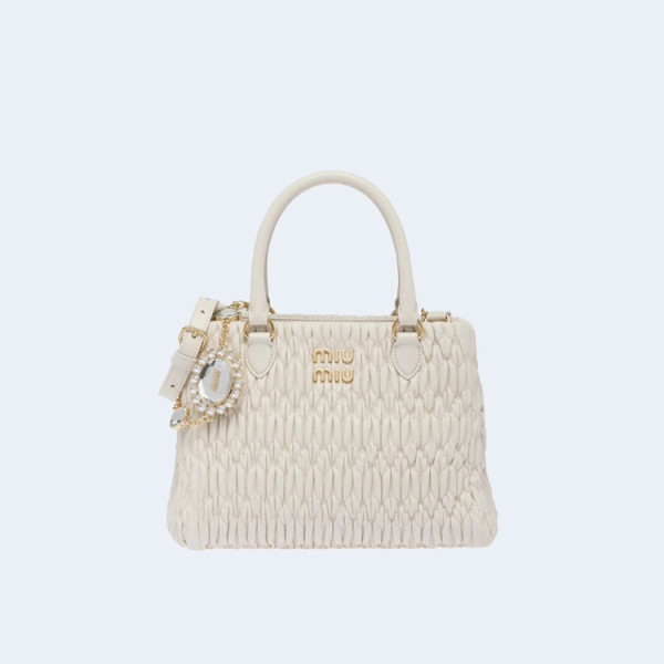 미우미우 마테라쎄 나파 가죽 탑 핸들 미니백 화이트