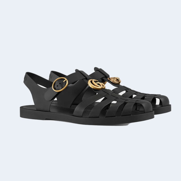구찌 러버 버클 블랙 스트랩 샌들