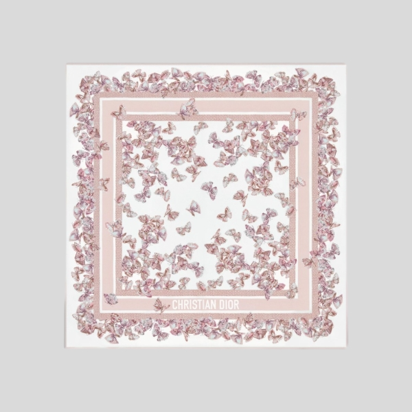 디올 나비 스퀘어 스카프 핑크
