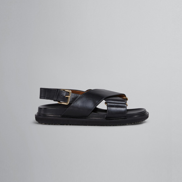 마르니 블랙 가죽 크리스크로스 샌들