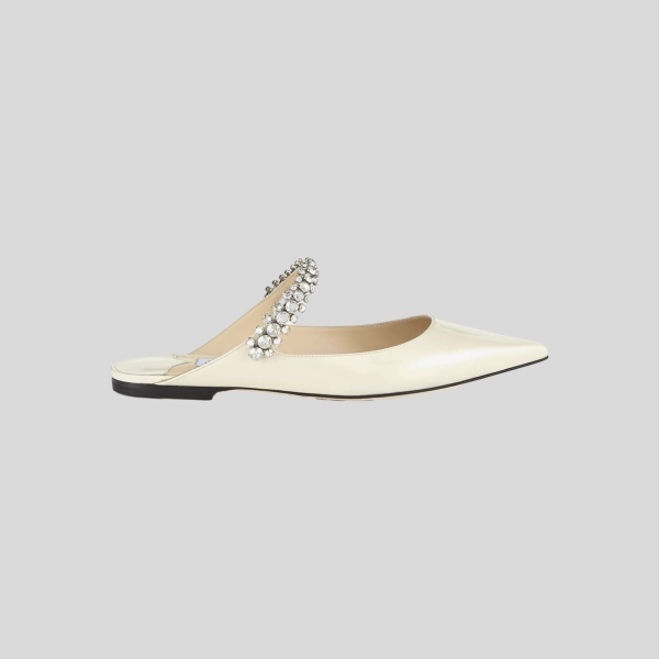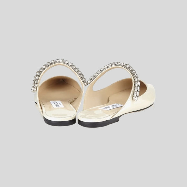 지미추 크리스털 스트랩 디테일 화이트 나파 가죽 슬리퍼 스니커즈